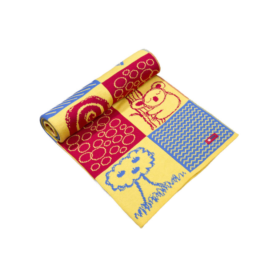 Merinowol babydeken geel/rood met dieren 70 x 90cm Q103