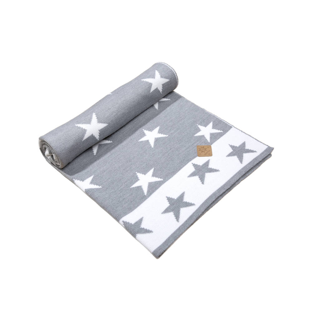 Merinowol babydeken grijs/wit met sterren 70 x 90cm Q102