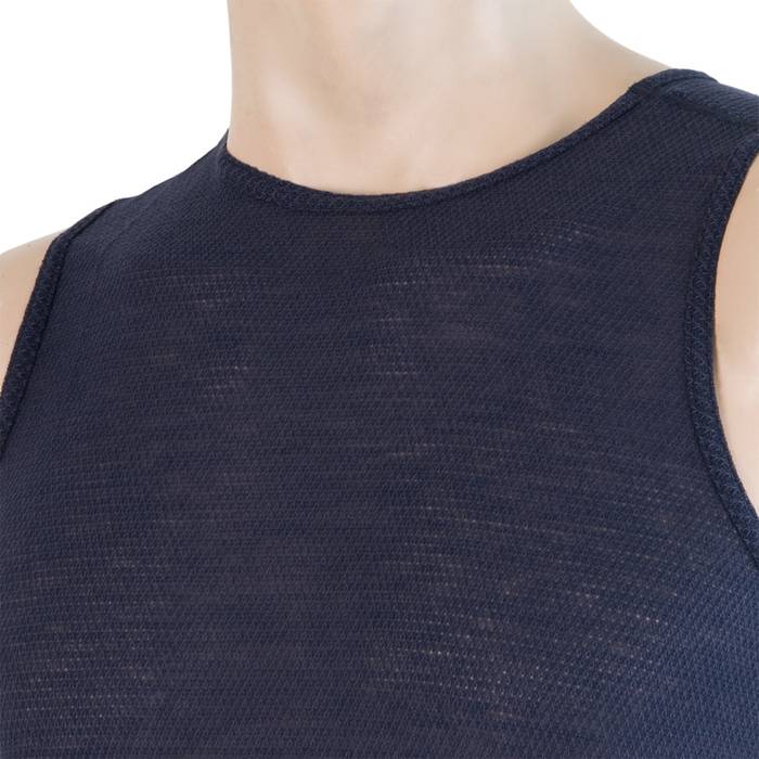 Merinowol geeft permanente antibacteriële bescherming en voorkomt tevens de vorming van geurtjes. Mouwloos tshirt met gekleurde platte naden. Doordat het materiaal vocht snel afvoert is deze kleding perfect voor sport met een hoge fysieke belasting, voor indoor en voor outdoor activiteiten.