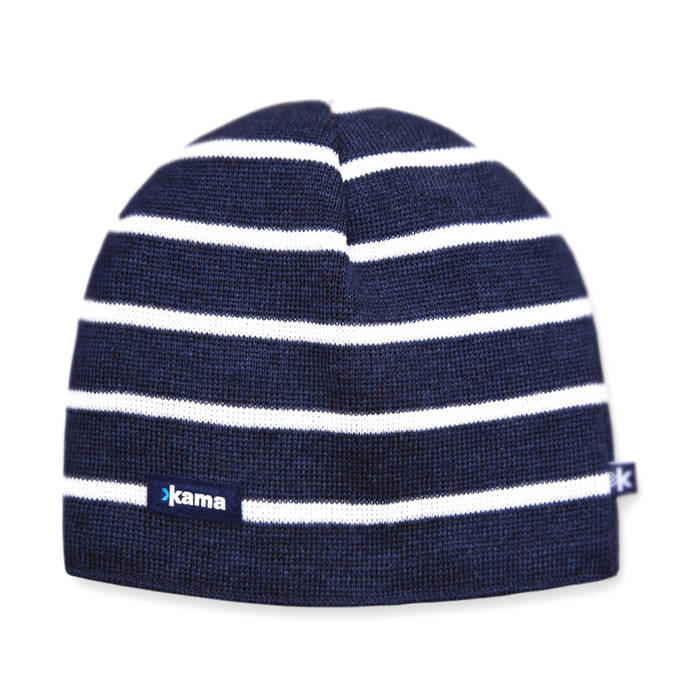 Kama Urban 100% merinowol en fleece gevoerde beanie blauw A77