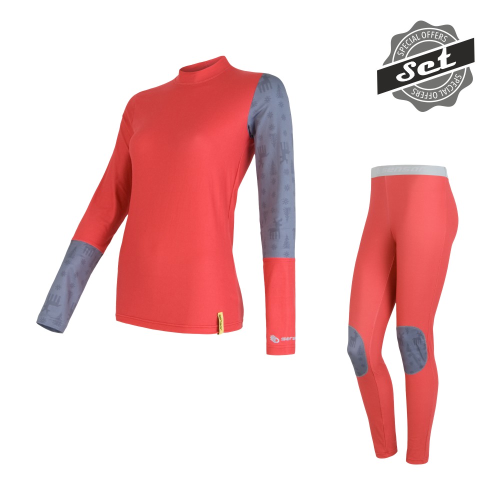 Sensor Flow voordeelset thermo shirt + lange onderbroek dames rood-grijs