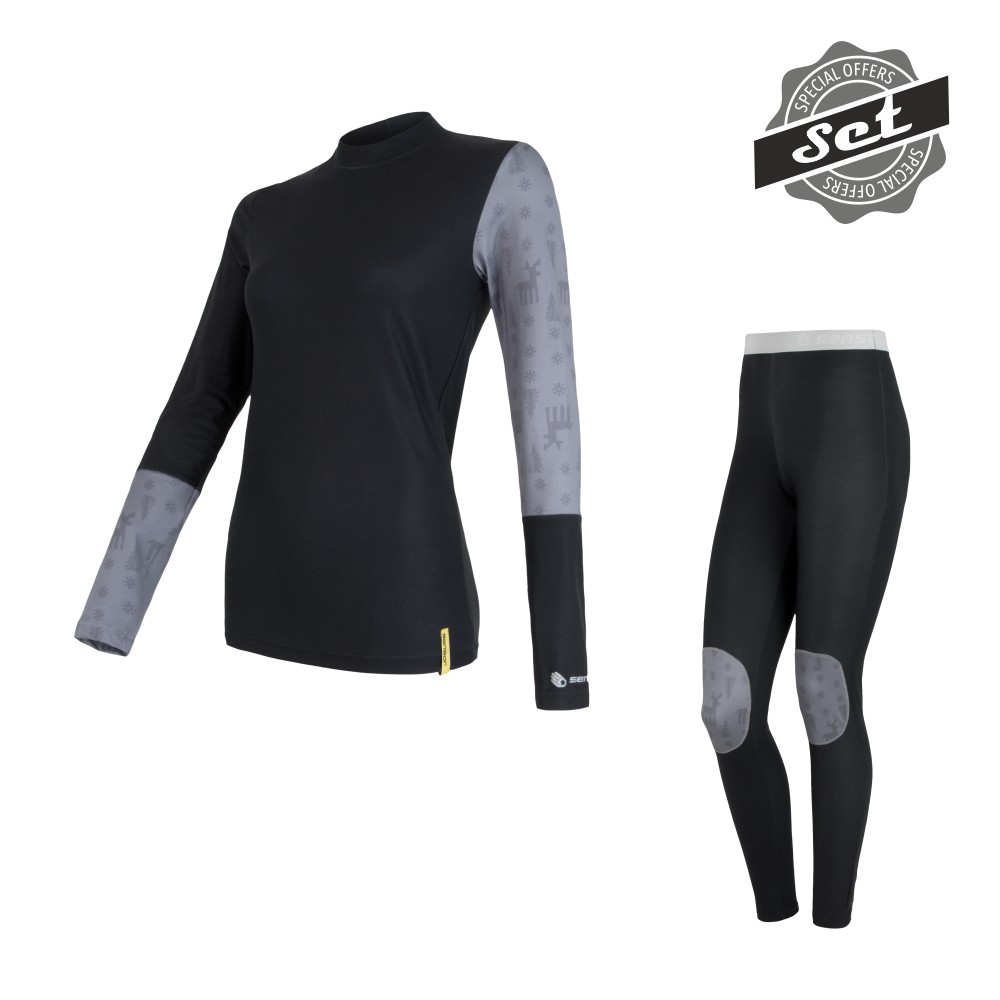 Sensor Flow voordeelset thermo shirt + lange onderbroek dames zwart-grijs